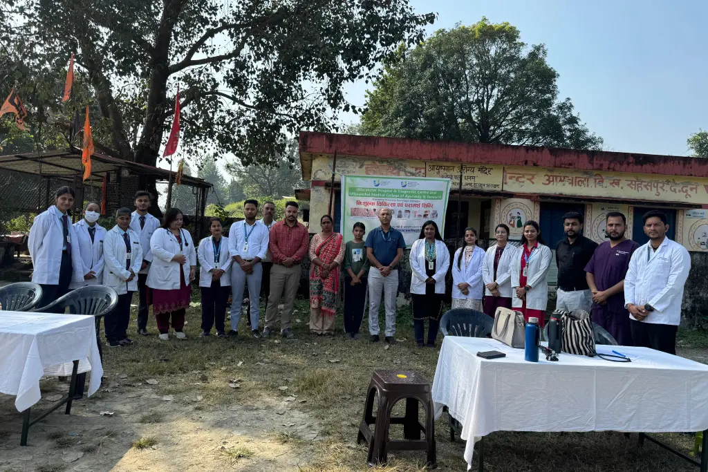 Uttaranchal Medical College of Ayurveda and Research, Dehradun in association with Uttaranchal Hospital and Diagnostic Centre, organized a free medical camp on 1st November 2025 at Hariyawa Kala, Shivpuri, Dhulas, Dehradun, with the objective of serving the community and promoting health awareness through Ayurvedic healthcare services.