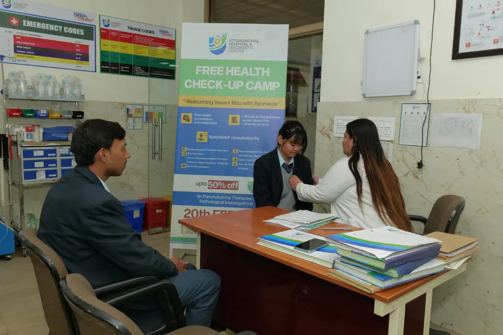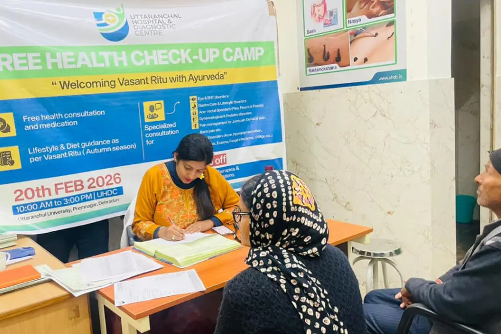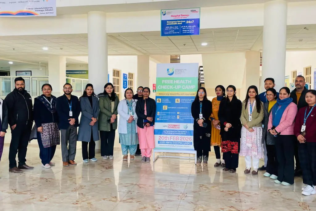 Uttaranchal Medical College of Ayurveda & Research, Premnagar, Dehradun organized a Free Health Check-Up Camp on 20th February 2026 at Uttaranchal Hospital and Diagnostic Centre.